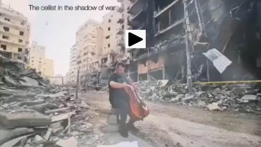 Since Israel began bombing Lebanon in early March, Lebanese musician Mahdi al Sahely has been posting mini-concerts from the bombed-out neighborhoods of Beirut.